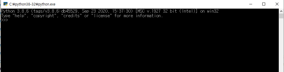 4) cmd에서 python을 입력하면 python.exe가 실행되면 설치 성공!