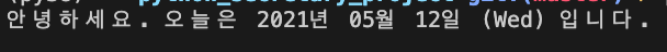print(f"안녕하세요. 오늘은 {nowDate} 입니다.") # 2021-05-112