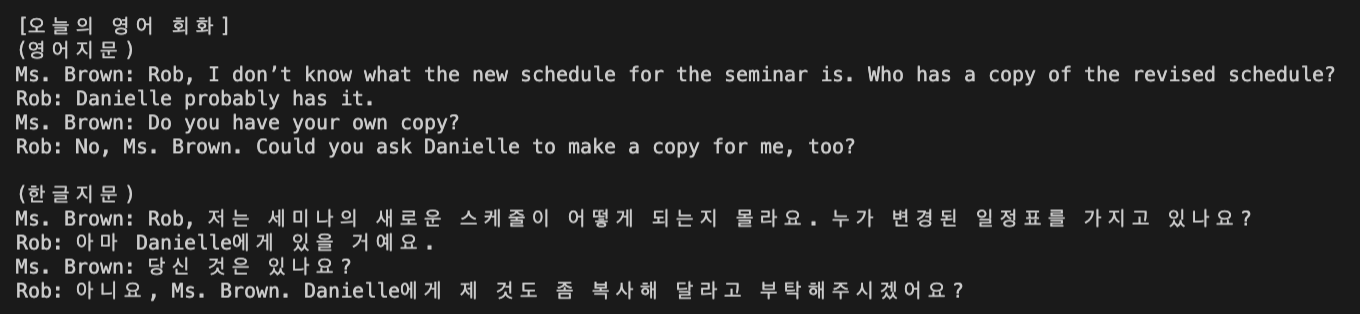 print("[오늘의 영어 회화]")
