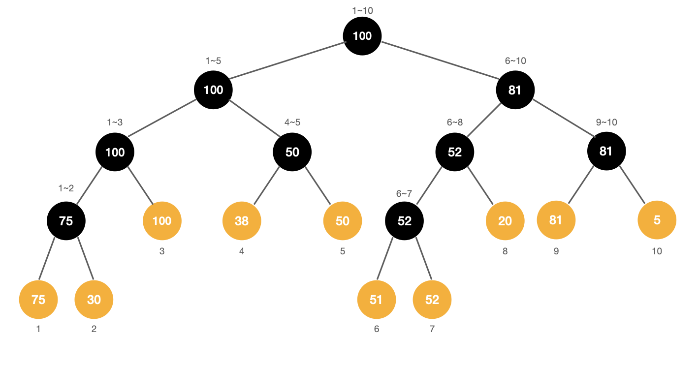 최소 트리랑 마찬가지로 각 구간 내의 최댓값을 보여주는 트리이다.