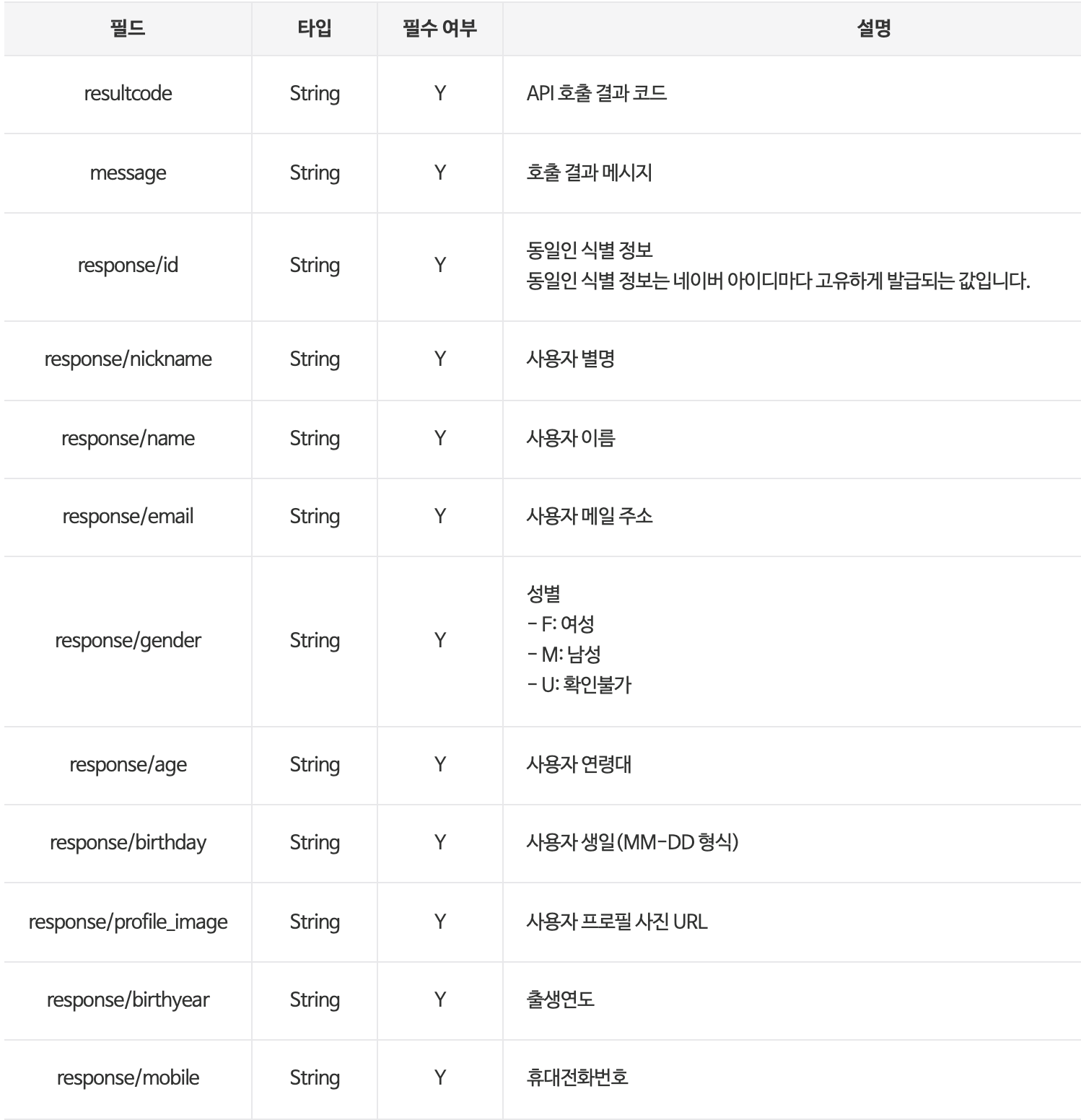 | GET / POST | https://nid.naver.com/oauth2.0/token | json | 접근 토큰 발급 요청 |
