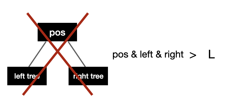 // 1) pos + 왼쪽 트리 + 오른쪽 트리 <= L