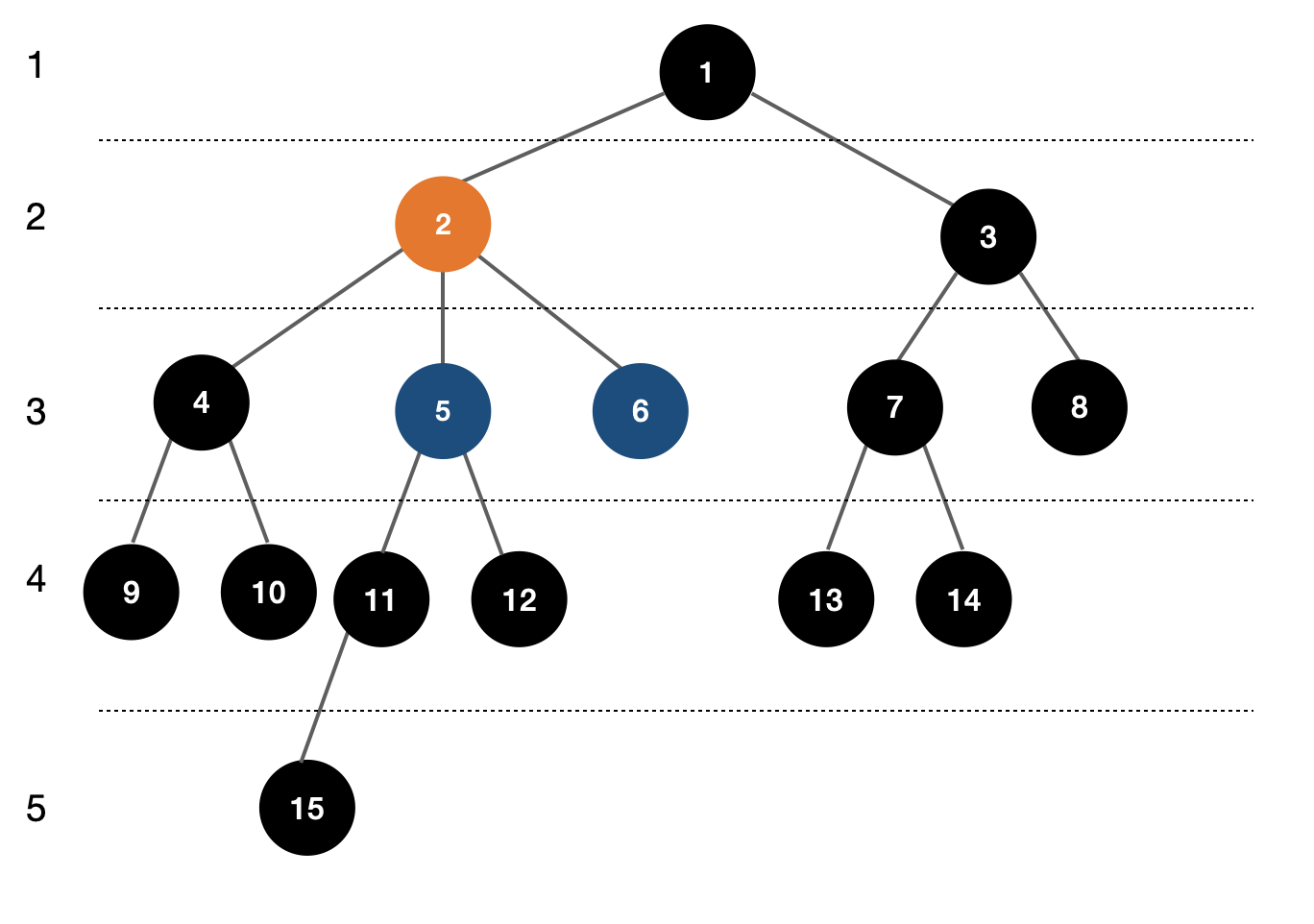 1. 6번 노드의 높이는 3, 15번 노드의 높이는 5이므로, 15번 노드의 높이를 6번에 맞춰준다.
