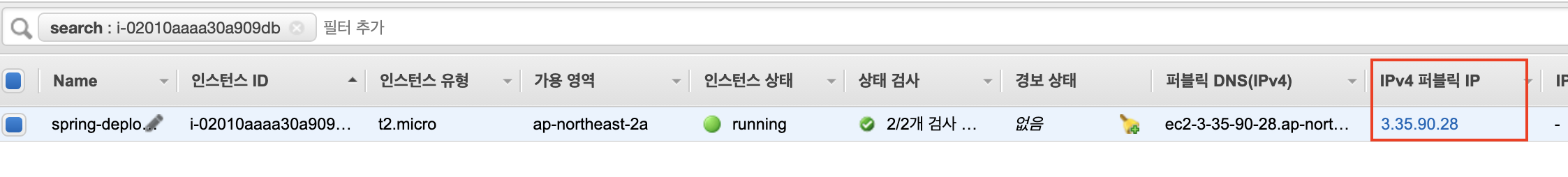 - EC2 인스턴스가 running 상태인지 확인