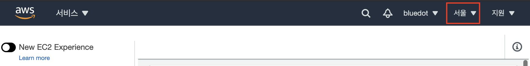1) 본인의 리전을 '서울'로 변경해준다.