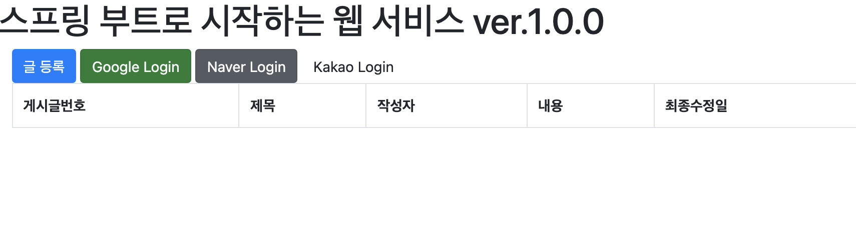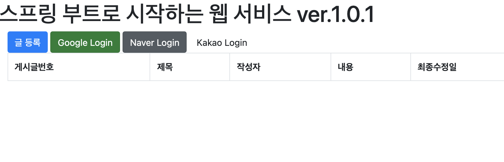 <h1>스프링 부트로 시작하는 웹 서비스 ver.1.0.1</h1>