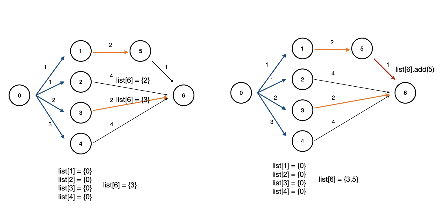 - 기존과 최단 경로 길이가 같다면 같이 저장해준다.