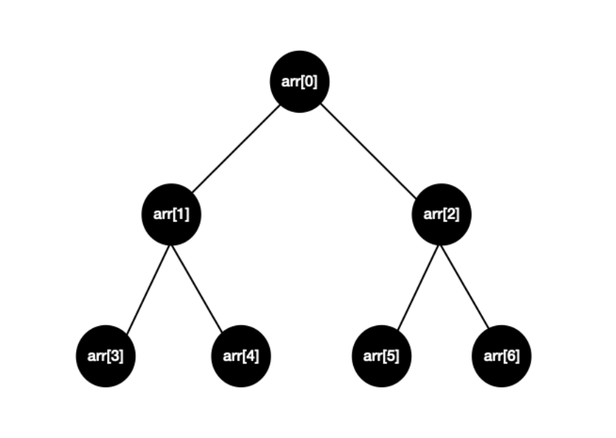 - arr[i]의 부모는 arr[(i-1)/2]에 대응된다. (나눗셈 결과는 내림한다.)