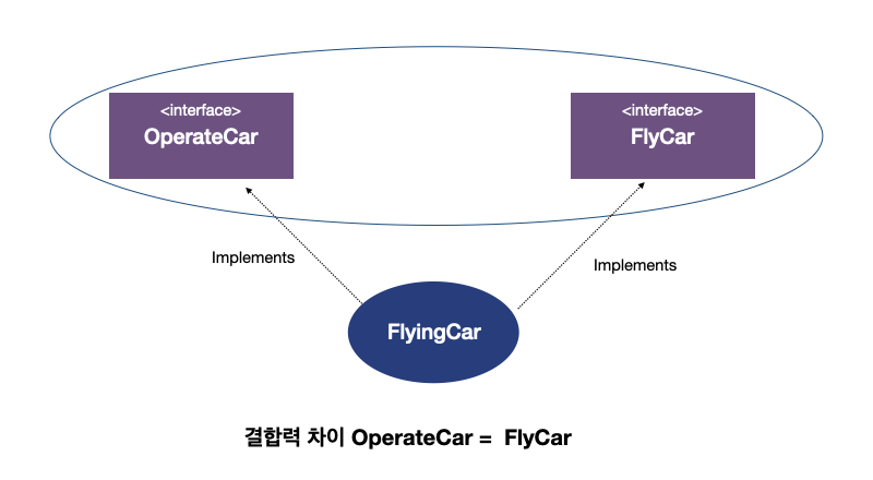 OperateCar, FlyCar 둘 다 구현 하고 메서드를 오버라이딩해야 한다. 둘의 결합력은 같기 때문에 컴파일러가 선택을 하지 못하는 것이다. super키워드를 사용하여 super타입에서 정의된 default 구현을 호출할 수 있다.