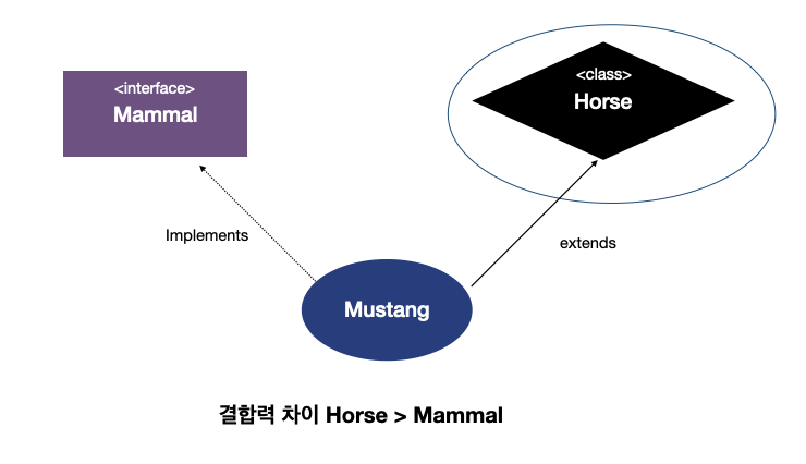 - 한마디로, 결합력이 더 높은 메서드를 추종한다고 보면 된다. (당연히 추상클래스 혹은 클래스보다 인터페이스의 결합력이 더 낮다. 참고)