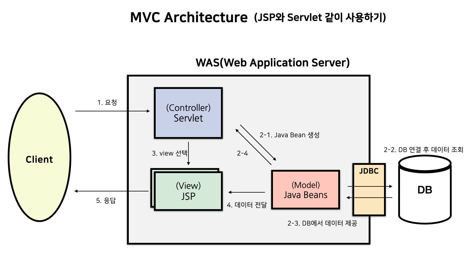 - 2-4) Java Bean은 JSP의 요청에 맞는 데이터를 제공한다.