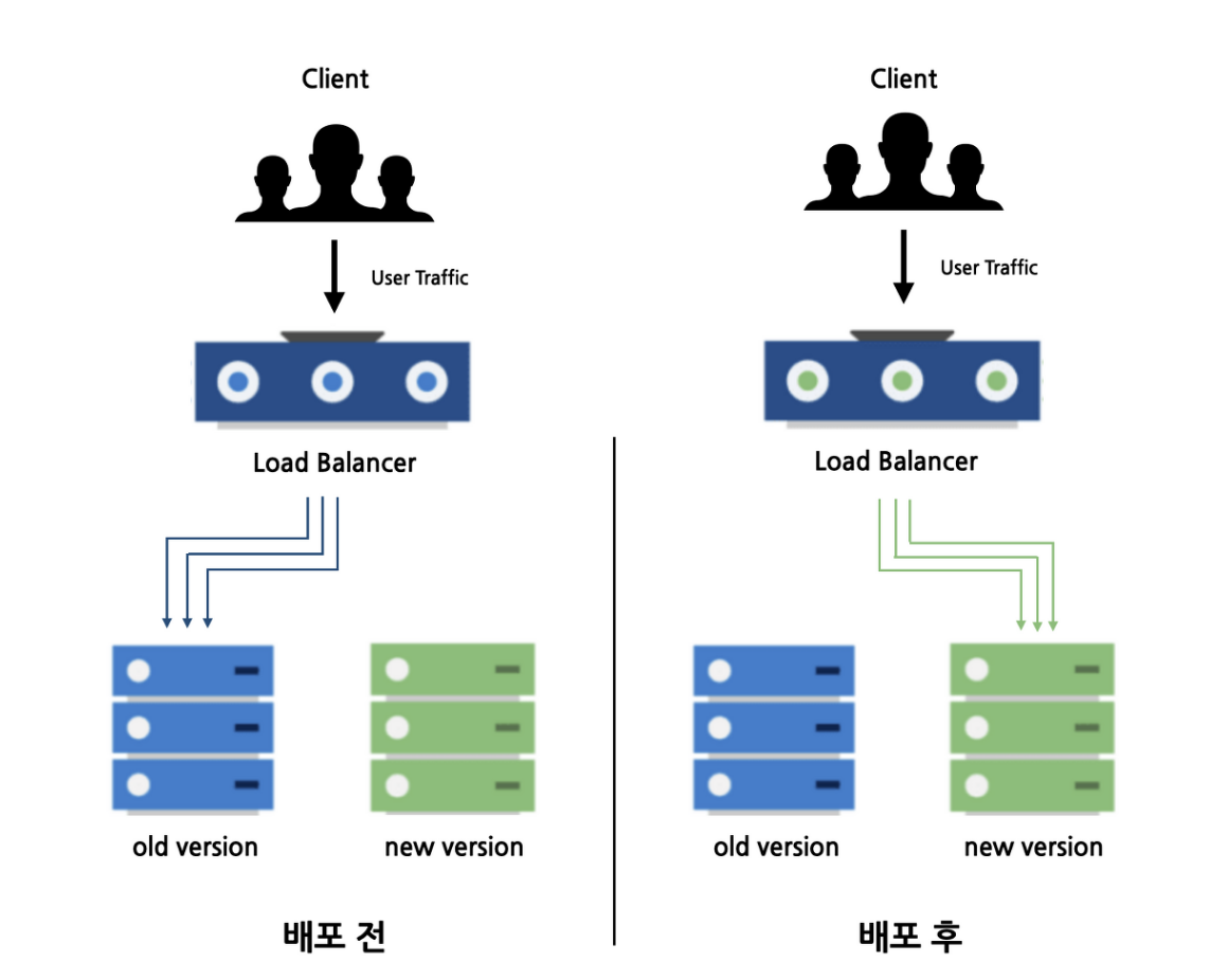 - 블루 그린(Blue-Green Deployment) 방식