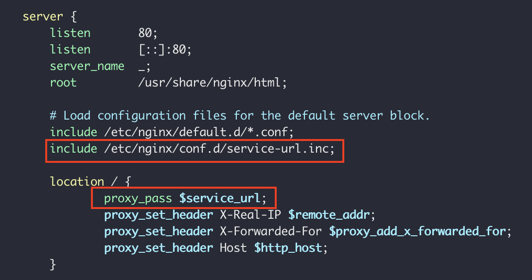 echo "set \$service_url http://127.0.0.1:${IDLE_PORT};" | sudo tee /etc/nginx/conf.d/service-url.inc