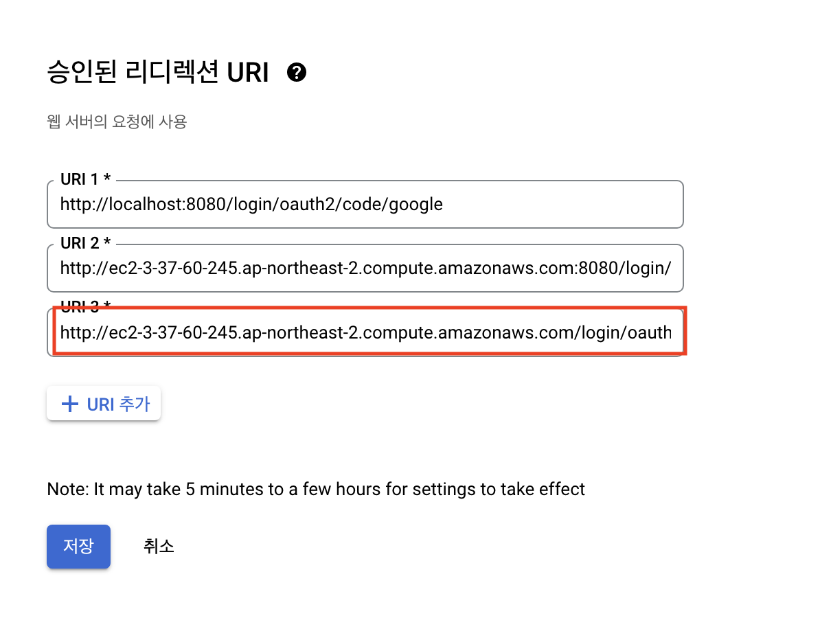 8080이 아닌 80포트로 주소가 변경되니 구글, 네이버, 카카오 로그인에도 변경된 주소를 등록해줘야 한다.