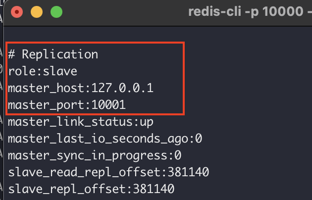 > replicaof 127.0.0.1 10000 # 10001, 10002 slave만 추가